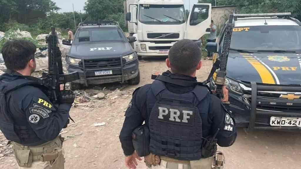 Agentes da Polícia Rodoviária Federal (PRF), recuperaram uma carga roubada e resgataram uma motorista de caminhão que ficou refém de criminosos nesta segunda-feira, em Jardim Gramacho.