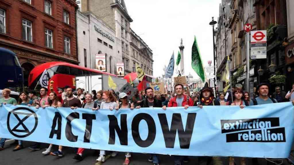 O movimento Extinction Rebellion persegue três ambições principais: que o governo do Reino Unido"diga a verdade sobre a mudança climática" e se comprometa a "acabar com asemissões de CO2, em 2025", e "crie assembleias de cidadãos que velem por estas mudanças".