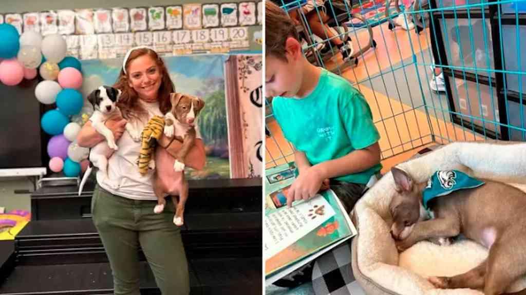 Uma professora dos Estados Unidos decidiu inovar nas aulas para a turma de 1ª série, levando cachorrinhos para estimular as crianças a lerem. Segundo ela, a inspiração para a iniciar o programa de leitura veio após ela começar a cuidar de filhotes durante a pandemia de covid-19, em 2020, usando sua própria casa como abrigo.
