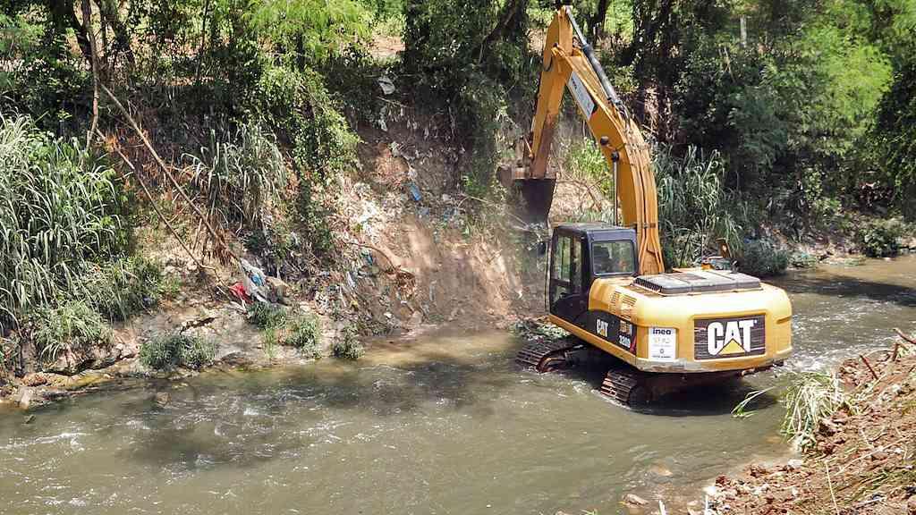 Em Rio Bonito, cidade da Região Metropolitana, acontecem a limpeza e o desassoreamento de um trecho de 6,5 quilômetros do principal rio da cidade. A estimativa é retirar 33 mil metros cúbicos de material.