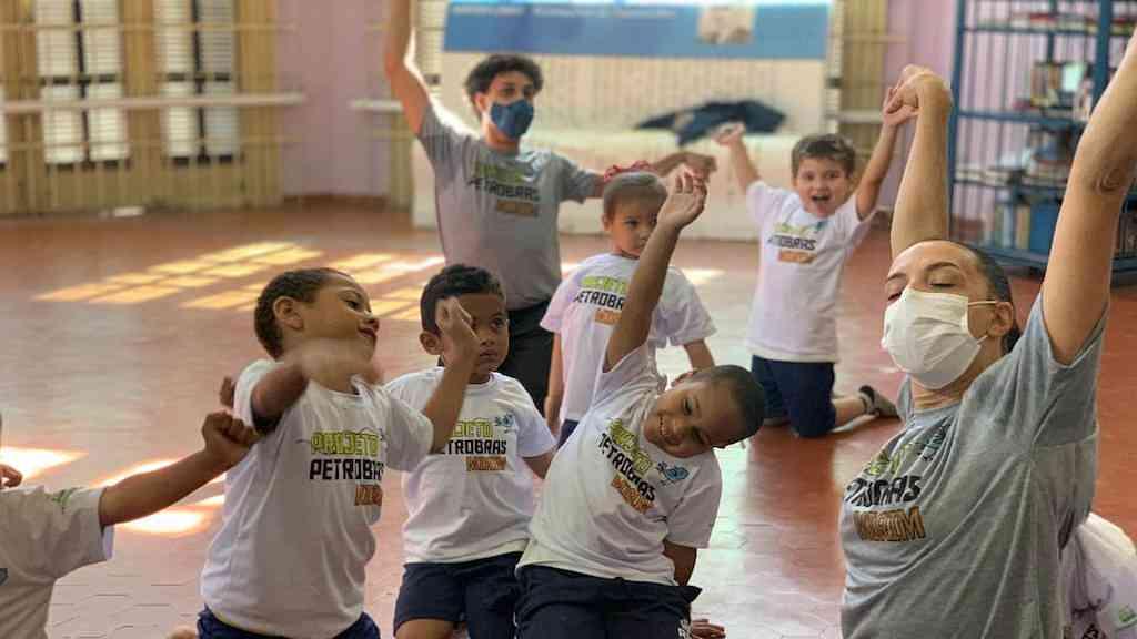 Estudantes da primeira infância da rede municipal do Rio de Janeiro recebem jogos de dança no Projeto Petrobras Mirim ministrado por bailarinos da Focus Cia de Dança.