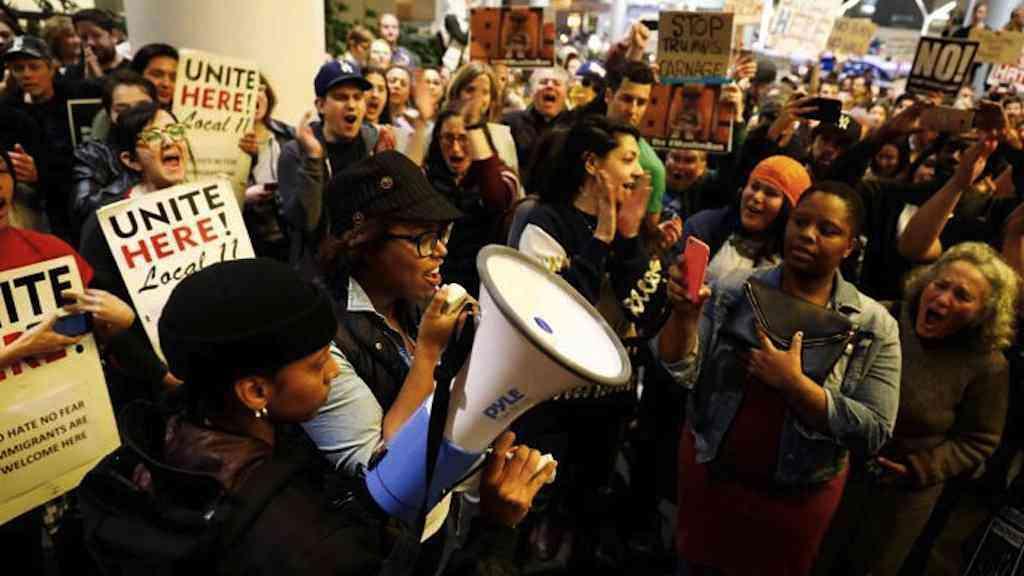A reação da população norte-americana, que compareceu em massa e de forma espontânea, nesse fim de semana, a vários aeroportos dos Estados Unidos para protestar contra a ordem executiva que suspendeu o programa de acolhimento de refugiados colocou o governo do presidente Donald Trump na defensiva. A medida também proibiu viagens ao país de pessoas originárias de sete países de maioria muçulmana. Trump está pressionado por um número crescente de parlamentares do Partido Republicano, agremiação partidária pela qual se elegeu, pedindo mudanças urgentes na ordem executiva.