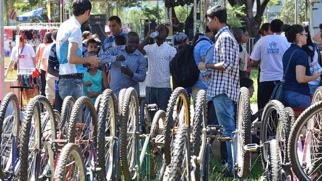 Refugiados de vários países que vivem no Distrito Federal receberam, neste domingo, 34 bicicletas para facilitar o deslocamento pelos espaços urbanos. As bicicletas são usadas e foram consertadas para a doação, feita pela organização não governamental (ONG) Rodas da Paz. O projeto é feito em parceria com a Agência da Organização das Nações Unidas para Refugiados (Acnur) e com o Instituto Migrações e Direitos Humanos (IMDH), ONG que auxilia os migrantes.
