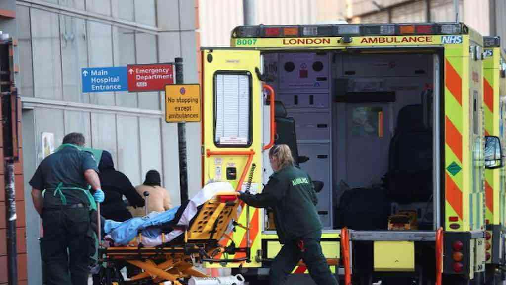 Paramédicos transferem paciente em meio a surto de coronavírus. Londres, Reino Unido