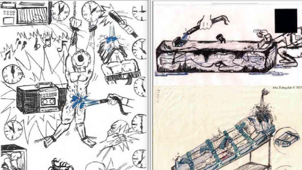Os desenhos foram esboçados de memória em sua cela em Guantánamo e enviados a Denbeaux, que é um de seus advogados. “Abu Zubaydah é o garoto-propaganda do programa de tortura dos Estados Unidos”, disse Denbeaux. “Ele foi a primeira pessoa a ser torturada, tendo sido autorizada pelo Departamento de Justiça com base em fatos que a CIA sabia serem falsos. Seus desenhos são o repúdio final ao fracasso e aos abusos da tortura.”