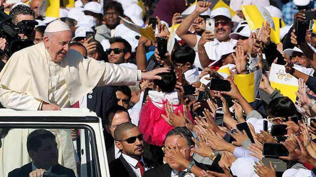 Em missa para 180 mil fiéis na Península Arábica, Francisco afirma que é profanação usar nome de Deus para justificar o ódio e que o cristão deve promover a paz.