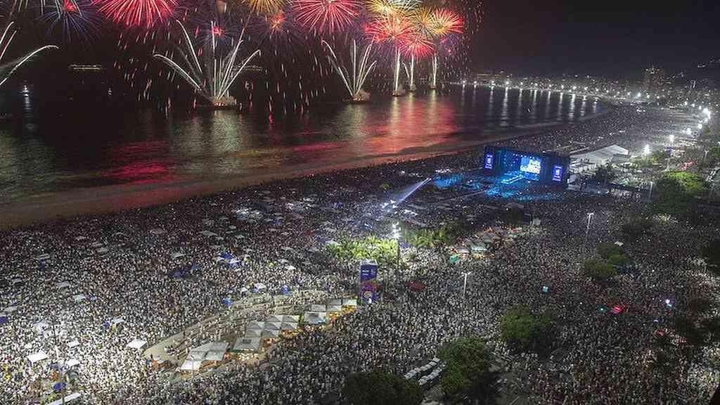 A festa em Copacabana, que tradicionalmente reúne o maior público, terá três palcos. O espetáculo de fogos se dará a partir de 10 balsas espalhadas pela orla. A orquestra sinfônica que acompanhará o show pirotécnico se apresentará no palco localizado em frente ao Hotel Copacabana Palace.