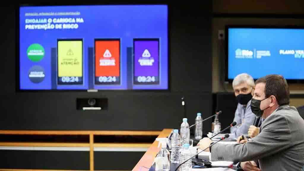 A prefeitura do Rio apresentou nesta terça-feira o Plano Verão 21/22 com as principais ações preventivas adotadas por 34 órgãos do município. O objetivo é minimizar os impactos das chuvas na cidade e engajar o carioca na prevenção de risco. Coordenado pelo Centro de Operações Rio (COR), o planejamento estratégico é composto por 12 frentes de trabalho e estabelece parcerias com concessionárias de serviços públicos e órgãos do governo do estado.