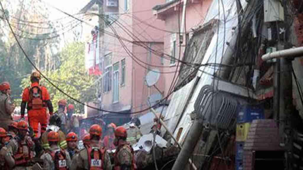 Rio: bombeiros resgatam mulher sob escombros de prédio que desabou