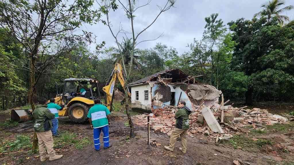 Os fiscais ambientais flagraram invasão da área, com supressão de vegetação e um imóvel de alvenaria, com diversas peças de roupas e utensílios de cozinha, além de um cavalo, indicando a permanência de pessoas no local. Uma retroescavadeira foi utilizada para a demolição.