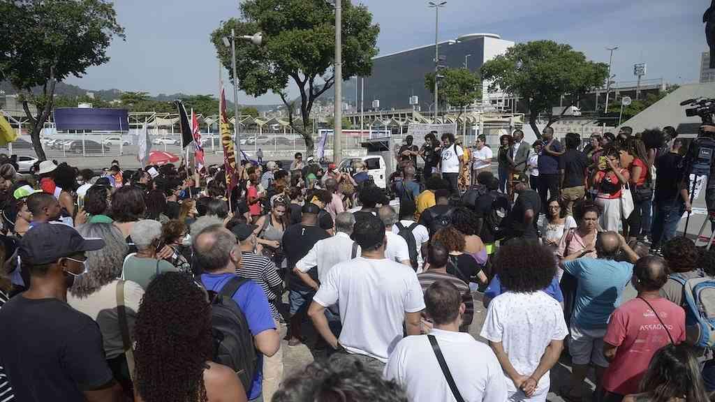 A manifestação se manteve em frente ao monumento e teve falas de ativistas, políticos e lideranças de movimentos sociais e de favelas, que protestaram contra a brutalidade do crime e a violência policial contra a população negra.