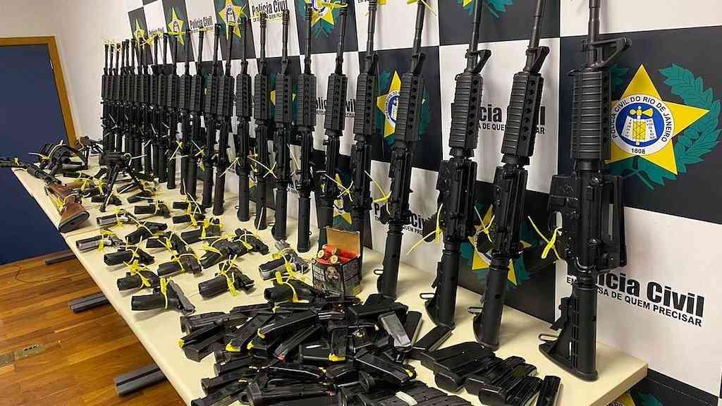 Em cinco meses, as forças de segurança do Rio de Janeiro apreenderam 321 fuzis, cerca de dois por dia, maior número dos últimos 16 anos. Esse resultado representa aumento de 57% em relação ao mesmo período do ano passado. Apenas no mês de maio foram apreendidas 57 armas de grosso calibre.