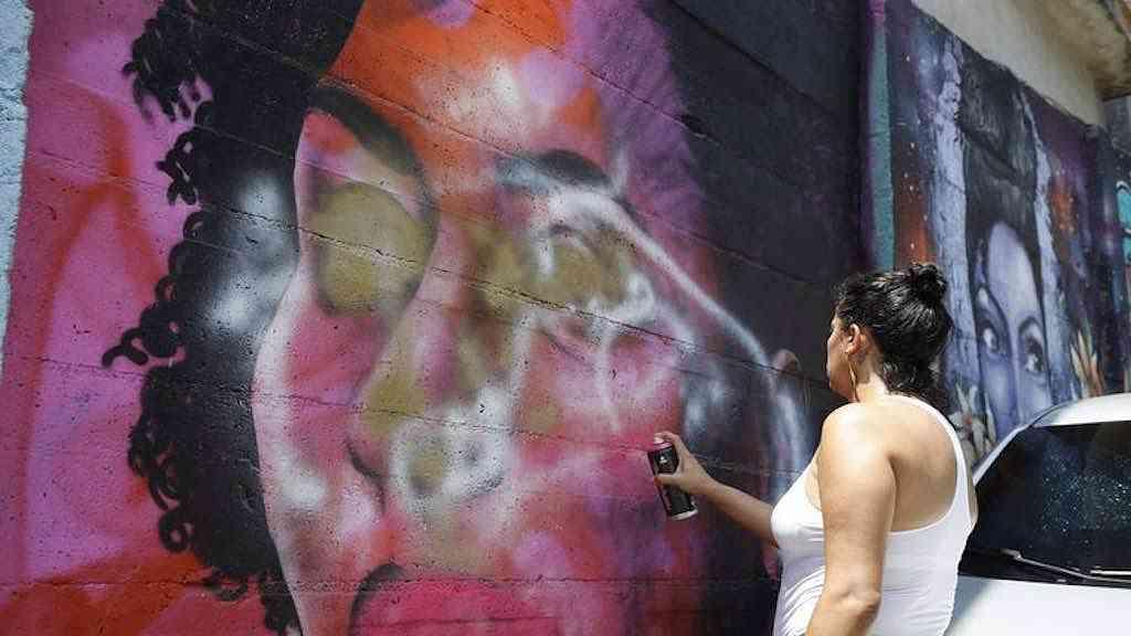 Grafite em homenagem a Marielle Franco na comunidade Tavares Bastos, Zona Sul do Rio