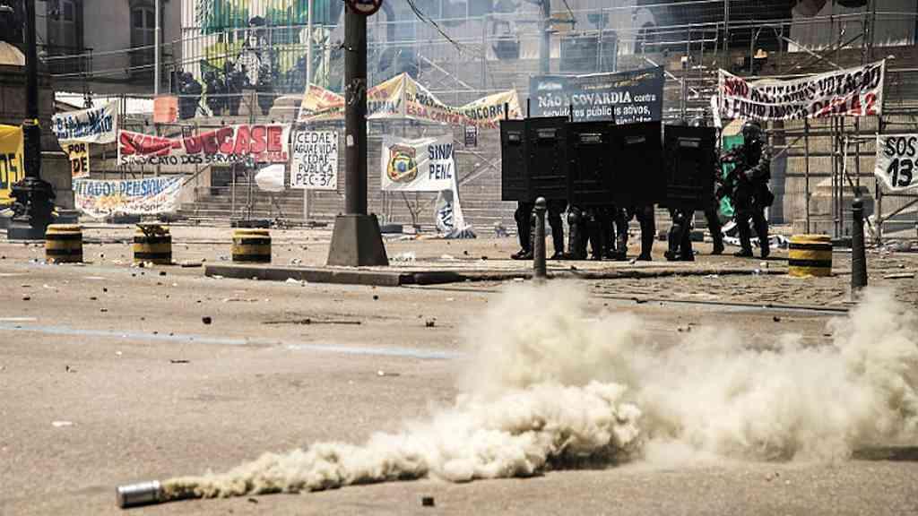 Depois de mais de quatro horas de forte confronto, a Polícia Militar conseguiu dispersar a manifestação dos servidores públicos em frente à Assembleia Legislativa do Rio de Janeiro. Milhares de bombas e balas de borracha foram utilizadas na operação, que tinha como objetivo garantir a votação do chamado “pacote de maldades”, medidas do governo que visam o corte de despesas públicas e atinge, principalmente, áreas sociais.