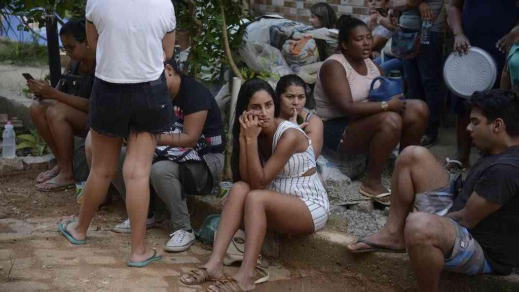 Moradores reunidos após desabamento de dois prédios na comunidade da Muzema, na Zona Oeste da cidade do Rio de Janeiro