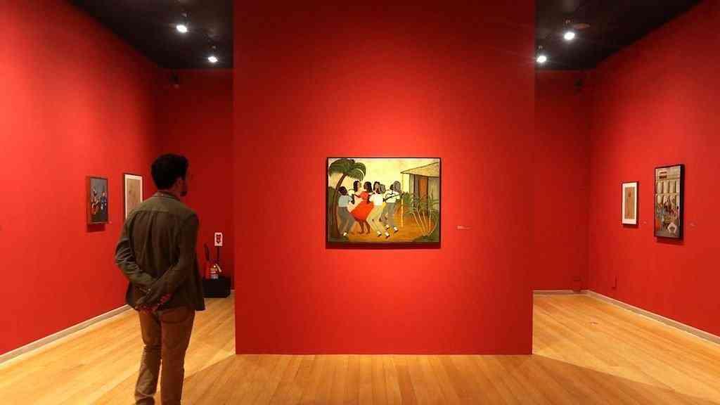Na mostra em cartaz no CCBB, as pinturas destacam o contexto pós-abolição da escravidão (1898) e as manifestações das experiências coletivas negras. Nascido no Rio de Janeiro, Heitor cresceu na região conhecida hoje como Pequena África. Nome que os organizadores da mostra explicam derivar de um título criado pelo artista: a África em miniatura, que compreende os bairros da Saúde, Gamboa e Santo Cristo, na Zona Portuária.