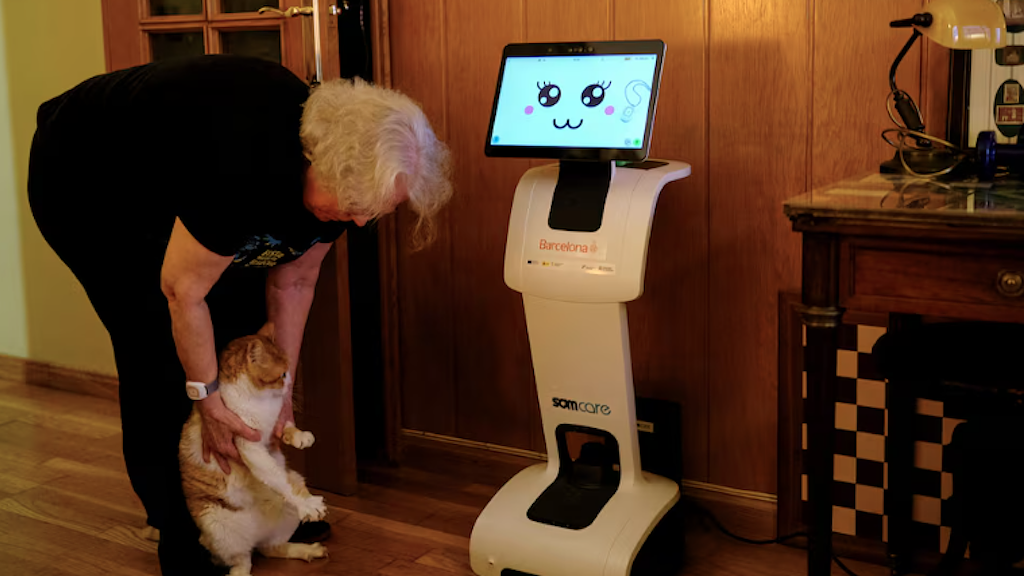 Barcelona implantou 600 desses robôs em residências particulares e centros de cuidados, no âmbito de um programa apoiado por uma subvenção de 3,8 milhões de euros dos fundos de recuperação covid da União Europeia.