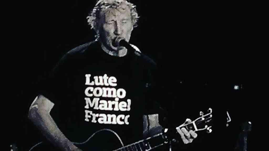 No intervalo do concerto, o fundador da banda Pink Floyd usou uma camisa preta na qual se lia “Lute como uma Marielle Franco” e projetou no telão um recorte de jornal sobre a morte da militante.