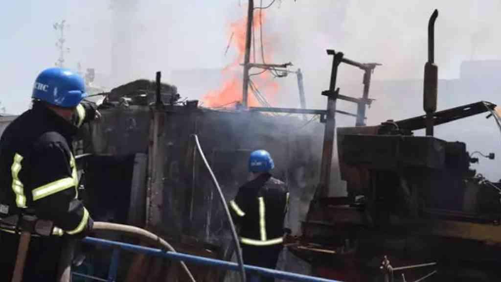 Bombeiros tentam conter incêndio causado por ataque russo no Porto de Odessa