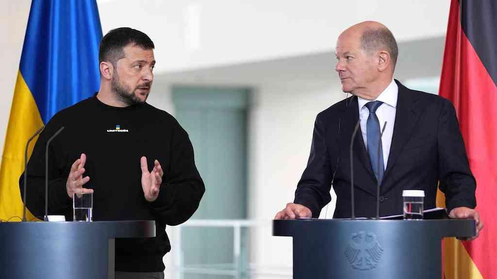 Chanceler federal da Alemanha recebe Volodimir Zelensky em Berlim. Ao serem questionados sobre oferta do Brasil, líderes ressaltam que proposta precisa prever retirada de tropas russas do território ucraniano.