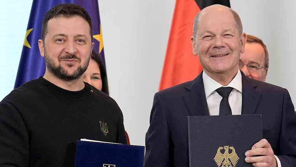 Zelensky agradeceu a Scholz pelo apoio da Alemanha e chamou o novo acordo de "sem precedentes".