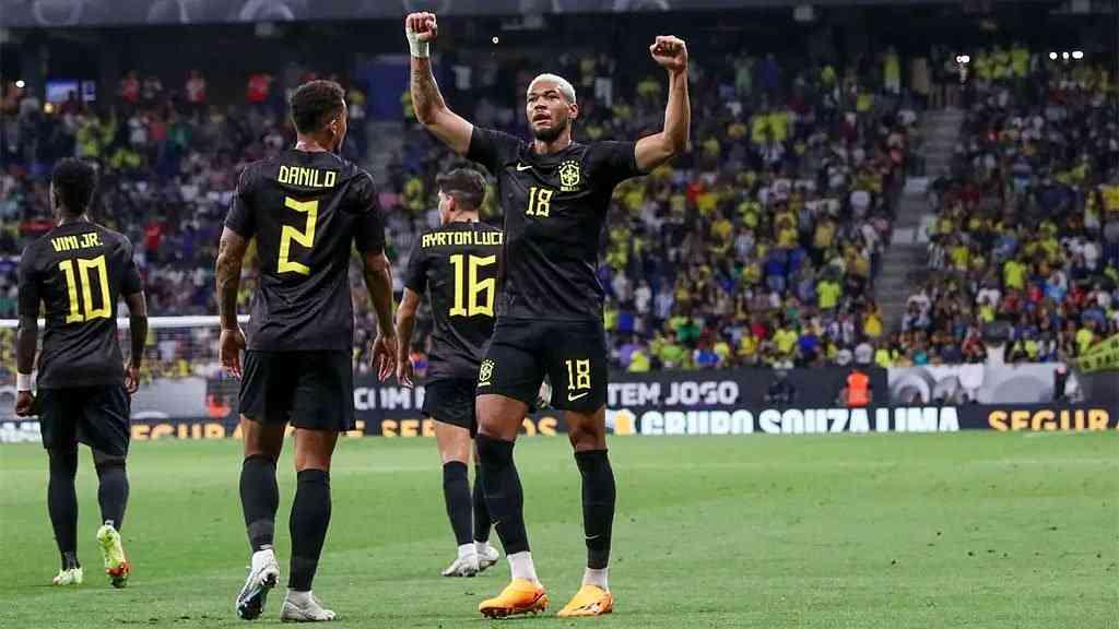 A seleção brasileira de futebol venceu o time da Guiné numa goleada de 4 a 1 no estádio Cornellà-El Prat, em Barcelona (Espanha), neste sábado. Joelinton, Rodrygo, Éder Mitão e Vinícius Júnior, o protagonista da partida com a camisa 10, marcaram para o escrete canarinho, e Guirassy descontou para a Guiné. A partida foi repleta de manifestações contra o racismo em solidariedade a Vini Jr., alvo reiterado de insultos racistas no Campeonato Espanhol, o último deles em 21 de maio.