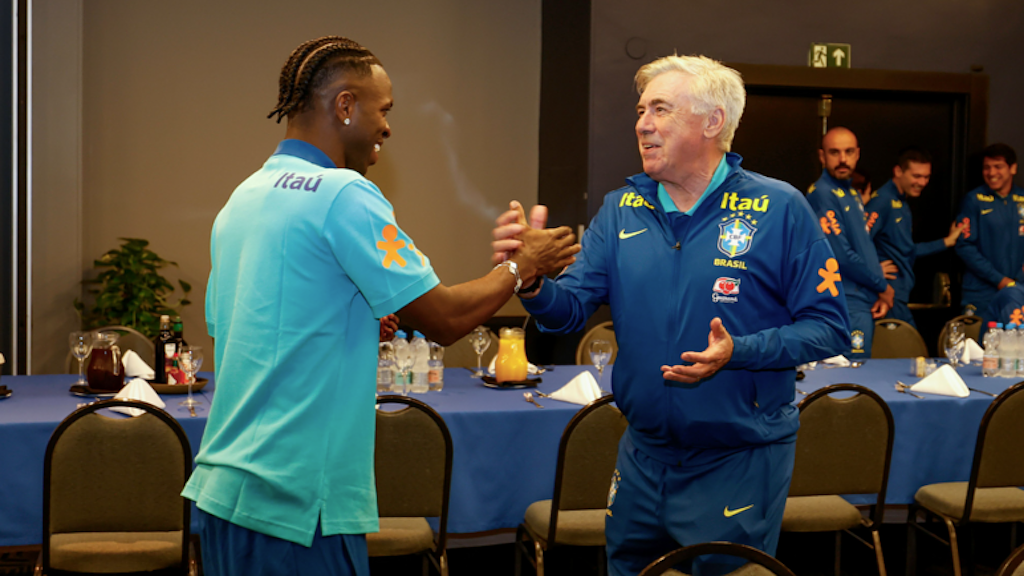 Um vídeo divulgado pela Confederação Brasileira de Futebol (CBF) mostra um clima leve no primeiro encontro dos convocados com Ancelotti, que foi contratado com a missão de conquistar o hexa na Copa de 2026.