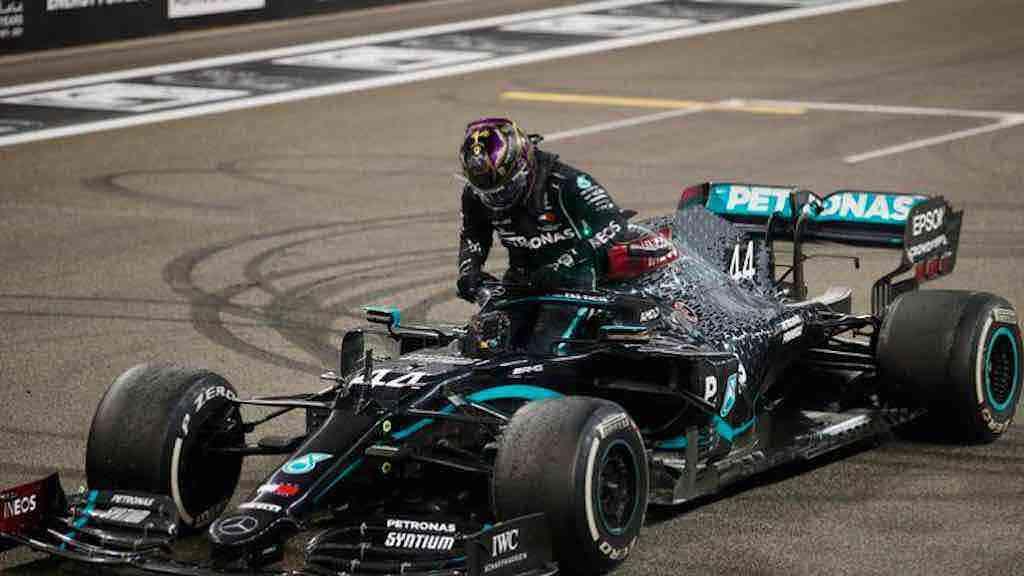 Lewis Hamilton sai de seu Mercedes depois do Grande Prêmio de Abu Dhabi de Fórmula 1