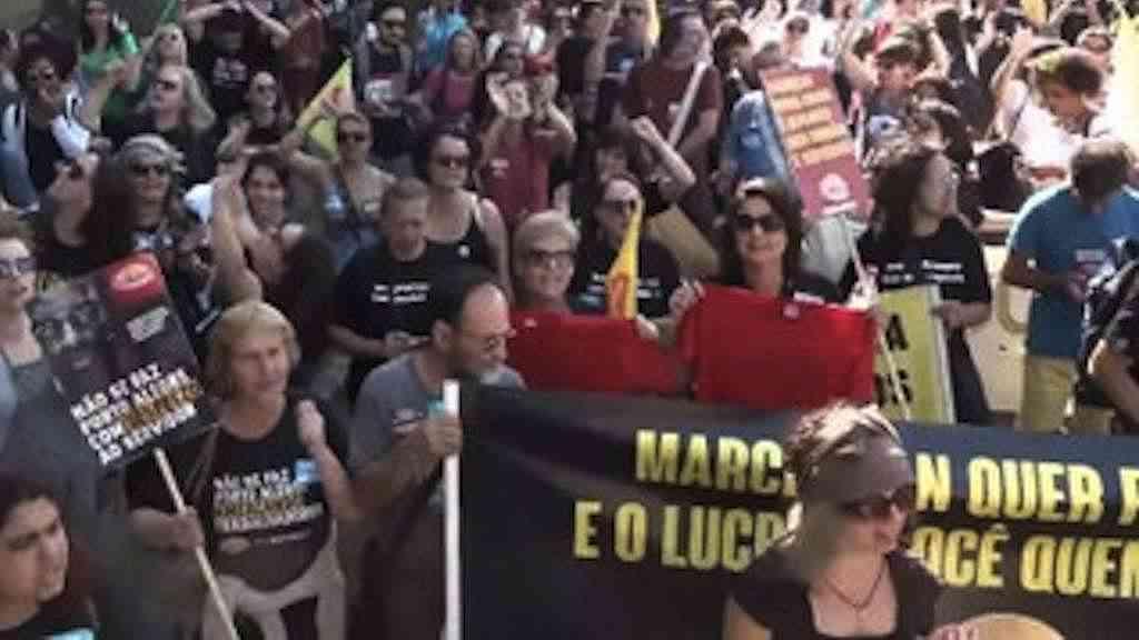 Houve "trancaço" na Avenida Ipiranga, uma das principais vias da capital gaúcha, e marcha até a prefeitura, com gritos de "Fora, Marchezan". "A política de assistência social vem sofrendo um desgaste e um desmonte", denuncia a pedagoga Ângela Aguiar, em entrevista ao repórter Guilherme Oliveira, para a TVT.