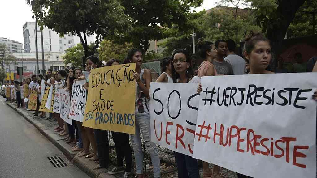 Servidores e estudantes da Universidade do Estado do Rio de Janeiro (Uerj) fizeram nesta terça-feira mais uma manifestação de apoio à instituição, que sofre com a falta de recursos. Vários funcionários da instituição estão há meses sem receber e os alunos já tiveram seu retorno às aulas adiado por duas vezes (primeiro para o dia 23 e para o dia 30 de janeiro).