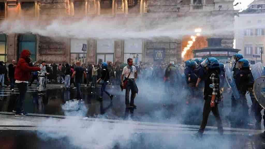 Polícia usou gás lacrimogênio para dispersar manifestantes em Roma