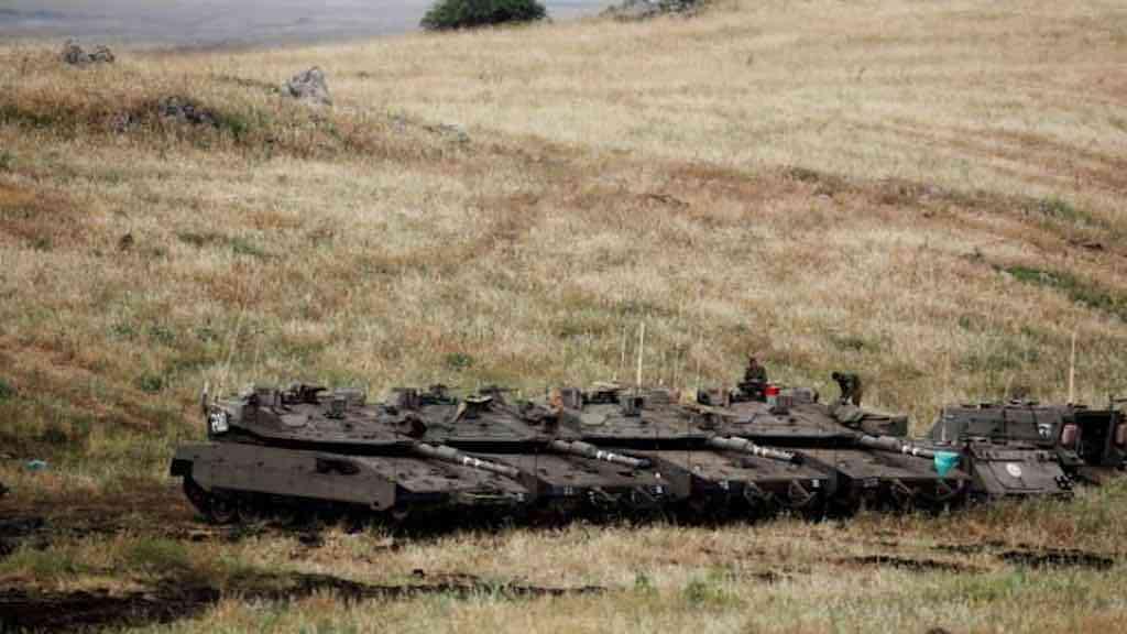 Tanques e soldados israelenses perto da fronteira com a Síria nas Colinas de Golã