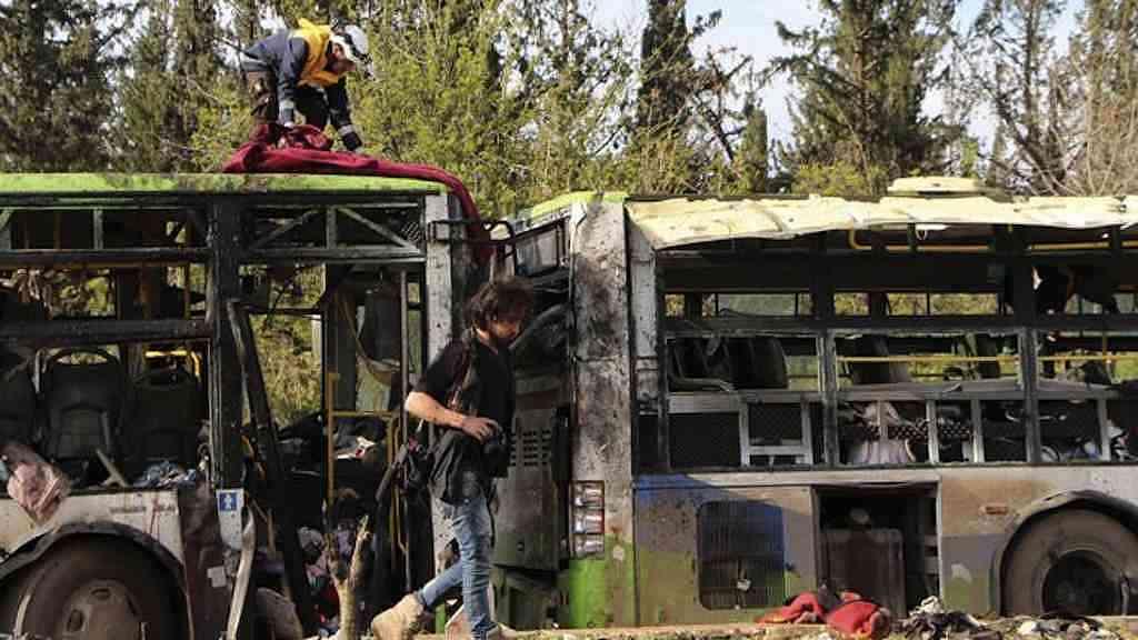 O comboio de ônibus com milhares pessoas partiu na sexta-feira, chegando durante a madrugada de sábado a Rashidin, perto de Aleppo. O carro-bomba, um furgão destinado ao transporte de alimentos, explodiu nas proximidades dos 75 ônibus. Ali se encontravam principalmente moradores de Fuaa e Kafraya, cidades do noroeste da Síria ainda nas mãos do governo. Mas sitiadas pelos rebeldes.