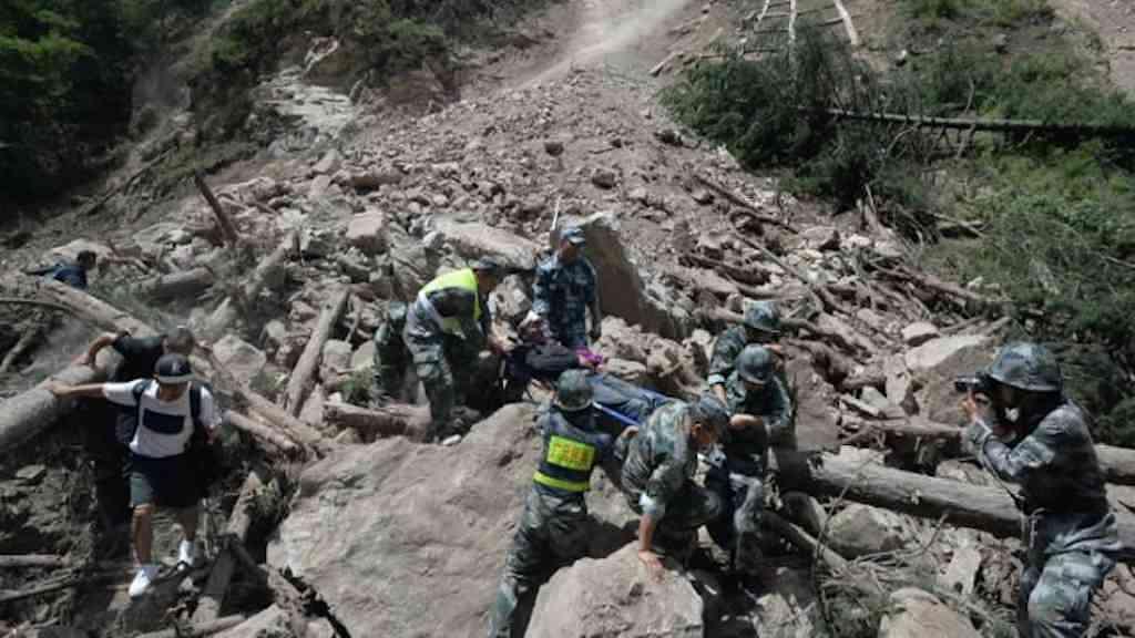 O governo de Sichuan disse que equipes de resgate estavam removendo turistas e moradores que foram isolados por desmoronamentos de terra.