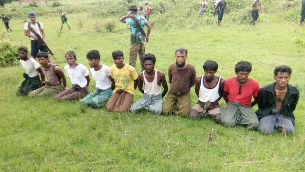 Mianmar concedeu libertação antecipada a sete soldados presos pelo assassinato de 10 homens e meninos muçulmanos rohingyas durante ação de repressão militar no Estado de Rakhine, no oeste do país, em 2017, disseram duas autoridades prisionais, dois ex-detentos e um dos soldados à agência inglesa de notícias Reuters. Muçulmanos rohingyas com as mãos amarradas observados por forças de segurança de Mianmar no vilarejo de Inn Din, em Rakhine