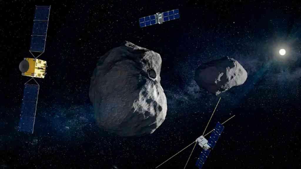 O equipamento vai igualmente estudar as propriedades dos dois asteroides e colocar na órbita de Dimorphos dois pequenos satélites, que farão observações da sua superfície e pesquisas por radar, as primeiras a um asteroide.