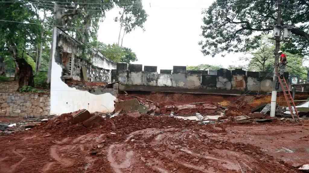 O muro do cemitério do Araçá desabou, na Rua Monsenhor Alberto Pequeno, região do Pacaembu da capital paulista, fato que levou à interdição preventiva da via, de acordo com a Defesa Civil.