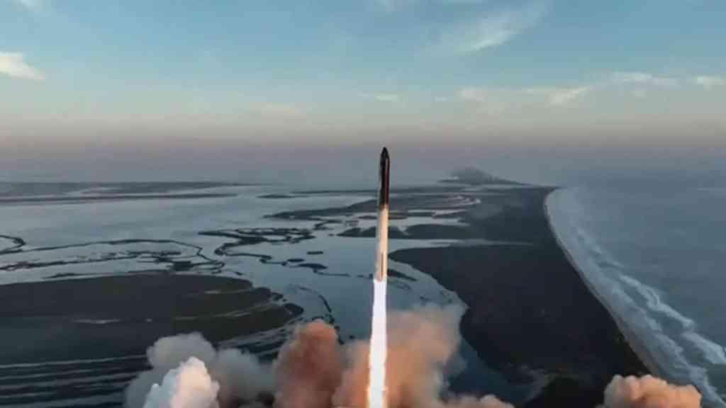 O sistema de foguete, de 123 metros, decolou por volta das 20h (horário de Brasília) das instalações da SpaceX em Boca Chica, no Texas, com seu propulsor Super Heavy de primeiro estágio retornando à terra como planejado.