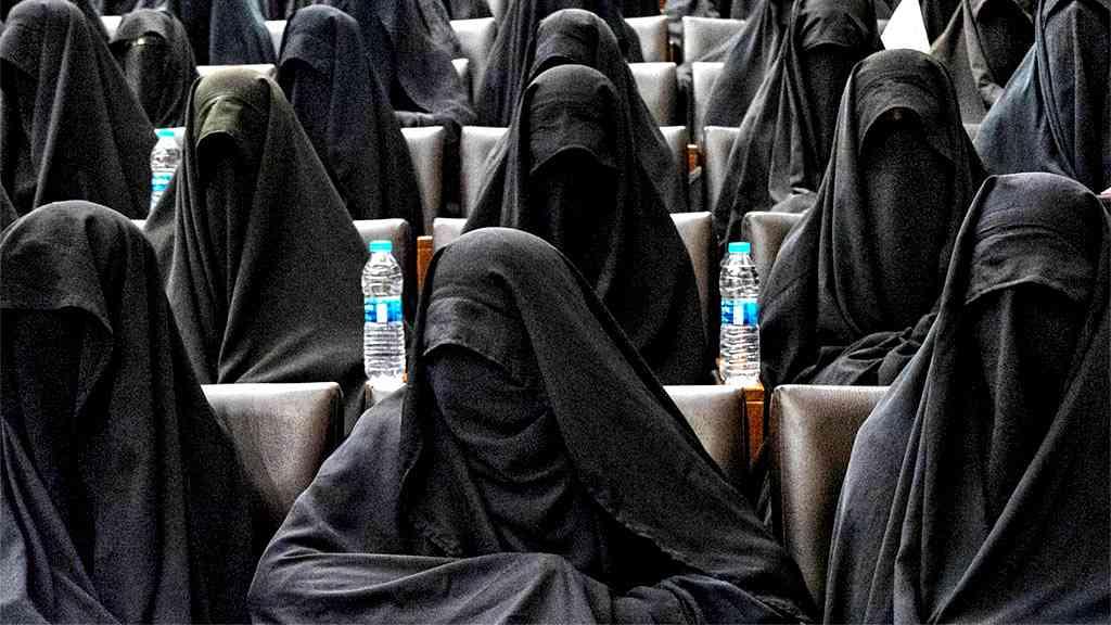 “Cobertas totalmente de preto da cabeça aos pés, elas elogiaram o hijab (a imposição de esconder seu corpo) e insultaram a educação mista e outras influências ocidentais. Mas a exibição preparada para a imprensa estrangeira também revelou que os fundamentalistas não têm uma seção feminina: eles recorreram a alunas e professoras de várias madrassas para encher o salão”, acrescenta a correspondente.
