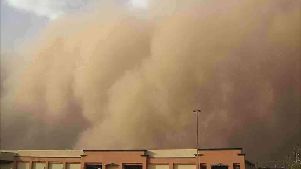 As condições climáticas começaram a se deteriorar na noite da última sexta-feira com ventos fortes lançando nuvens de poeira e areia cobrindo vastos territórios e reduzindo a visibilidade a poucos metros.