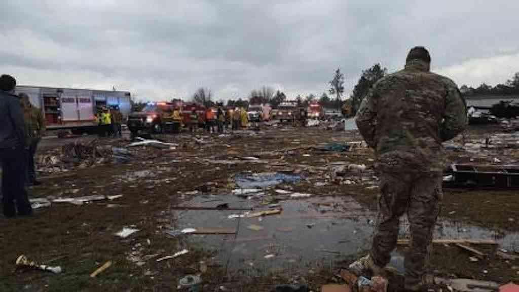 Sete pessoas morreram no condado de Cook, na Geórgia. Informaram os serviços de emergência estaduais, e um parque de trailers foi especialmente afetado, segundo os relatos. Fotos mostraram edifícios desmoronados, tetos destruídos, árvores derrubadas e campos cobertos de destroços.
