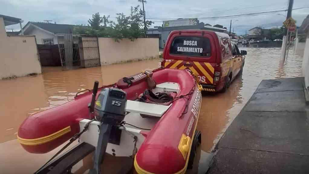 Em Governador Celso Ramos, na Grande Florianópolis, um experiente pescador, de 72 anos, morreu afogado após ser levado pela correnteza enquanto verificava sua embarcação. Seu corpo foi encontrado esta manhã. Para resgatar cerca de 700 trabalhadores ilhados, os bombeiros tiveram que usar a mangueira de uma viatura estendida como uma espécie de “linha de vida” entre o pátio de uma empresa e um local seguro. A cidade também foi palco de uma cena que viralizou nas redes sociais: parte de um quartel do Corpo de Bombeiros veio abaixo ao ser atingido pelas águas da chuva.