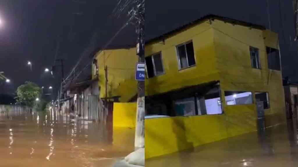 Vídeos registrados por moradores mostram os bairros alagados e carros com dificuldade de circular pela região. Veja abaixo: