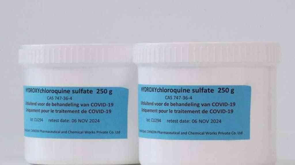Caixas de hidroxicloroquina em hospital de Liége, na Bélgica
