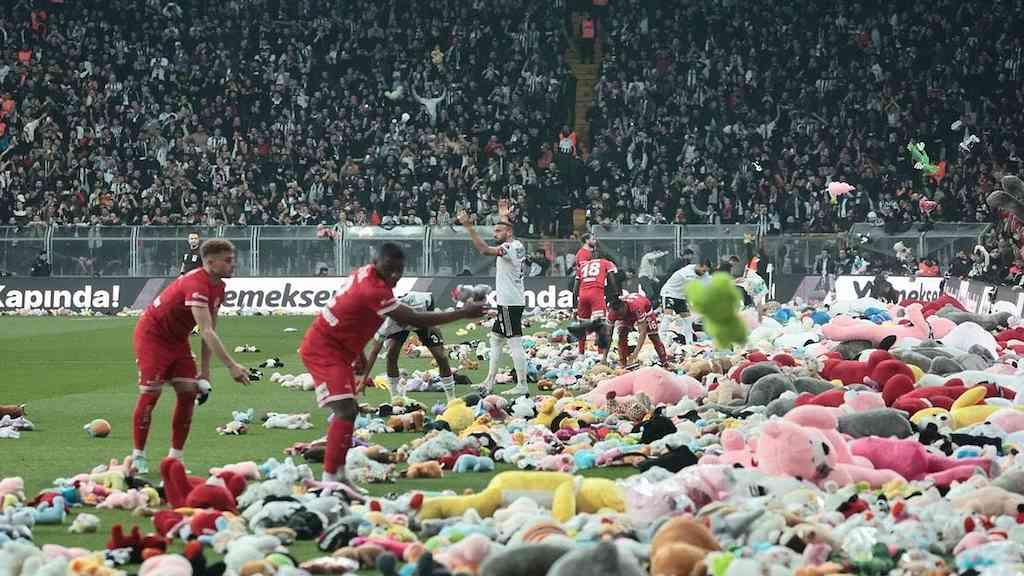 Os torcedores do clube turco Besiktas jogaram milhares de brinquedos de pelúcia no campo durante a partida de domingo contra o Antalyaspor para serem doados a crianças afetadas pelo terremoto na Turquia e na Síria.