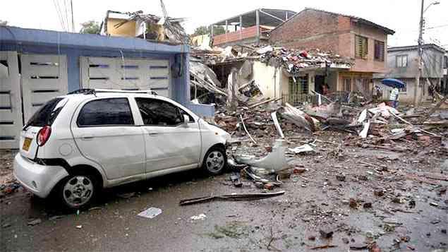 A delegacia ficou destruída após a explosão de um carro-bomba, no interior da Colômbia
