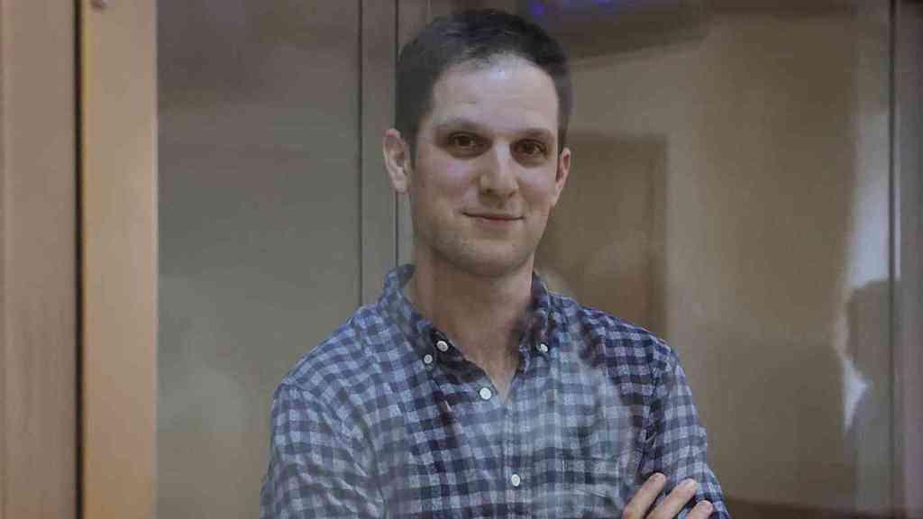 Gershkovich, repórter do Wall Street Journal, nega as acusações de espionagem. Ele parecia calmo e sorriu enquanto estava em uma gaiola de vidro e metal antes da decisão do recurso, vestindo uma camisa xadrez com os braços cruzados.