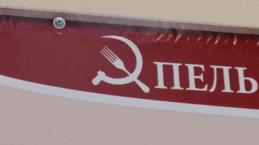 Os tempos mudam: na Crimeia, o martelo foi substituído por um garfo, na porta de um restaurante de fast-food