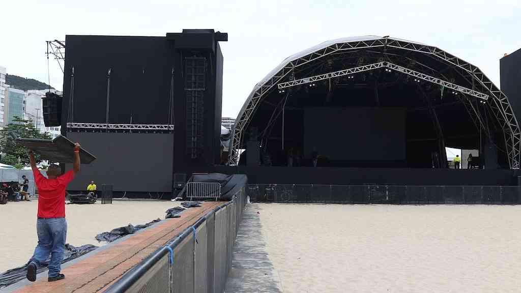 O palco principal foi montado na areia, em frente ao hotel Copacabana Palace, de onde os artistas chegarão, através de uma passarela provisória especialmente construída sobre a Avenida Atlântica. Além de Zeca Pagodinho, está prevista a apresentação de Iza, Alexandre Pires e bateria da Grande Rio. Em outro palco, em frente à Rua Santa Clara, as atrações serão: Mart’nália, Bala Desejo, Gilsons, Preta Gil, bateria da Beija-Flor e DJs.