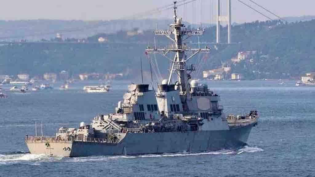 O USS Ross navega no estreito de Bósforo a caminho do Mar Negro